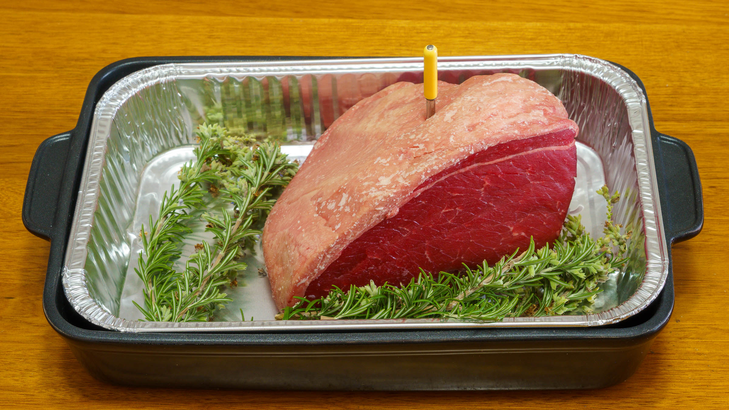 2. On the day of cooking, insert the thermometer.