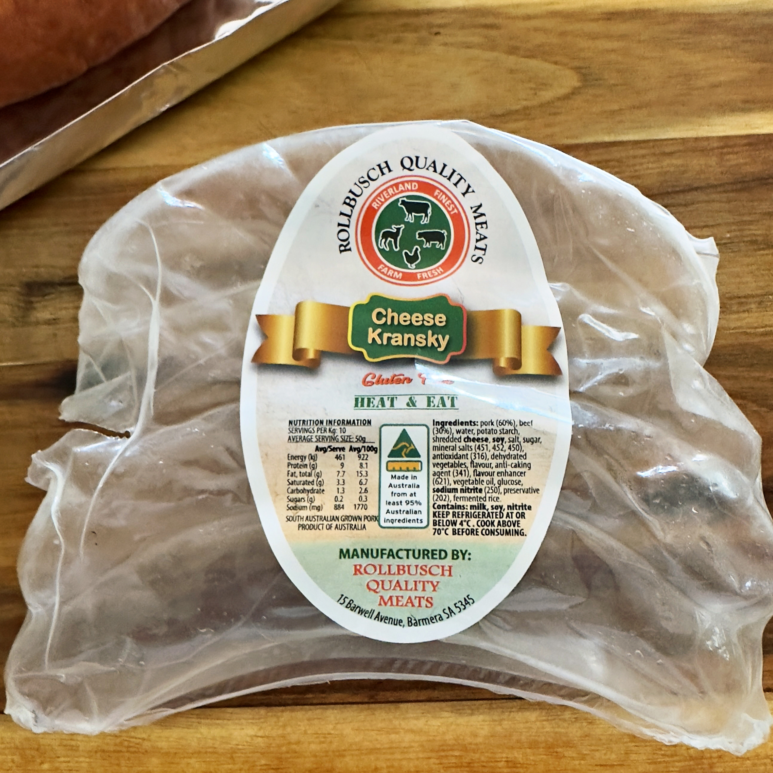 A photograph of a label for Rollbusch Quality Meats Cheese Kransky
